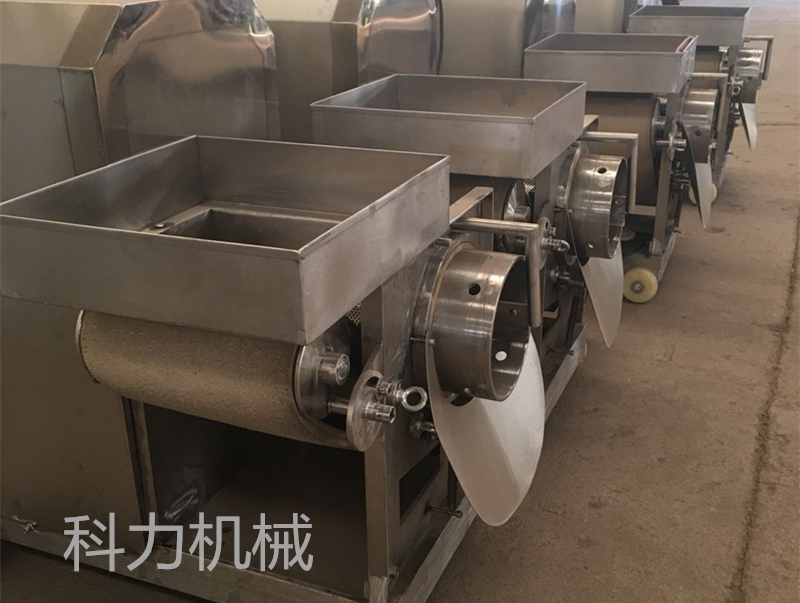 將小魚或中型魚剖開后直接投入,大型魚需要去頭去尾、切塊后投入,經(jīng)過低速高密度不銹鋼篩筒和輸送帶將魚體壓擠后帶出魚骨刺皮鱗片等,提取干凈的魚糜,
